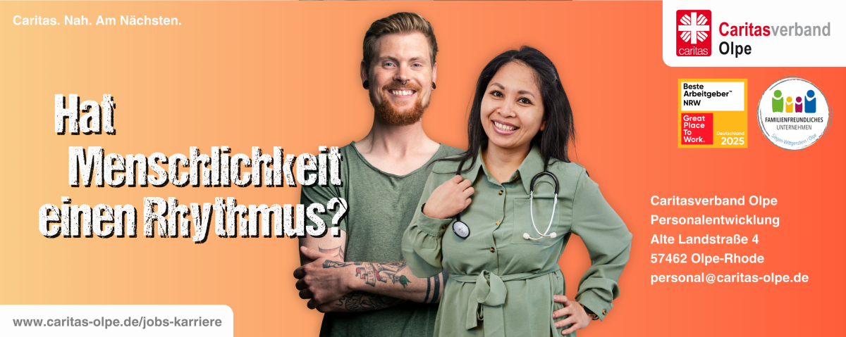 Sie können sich vorstellen, unser Team im Caritasverband Olpe zu unterstützen und möchten sich der Herausforderung stellen?